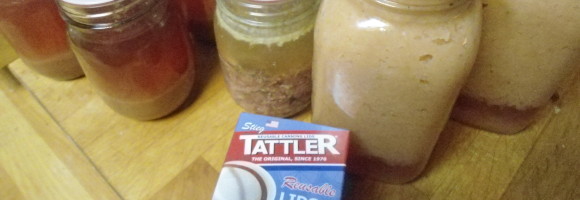 Now I can principally with the Tattler lids – the steel tops are reserved for jars which will be given away with no expectation of return.
