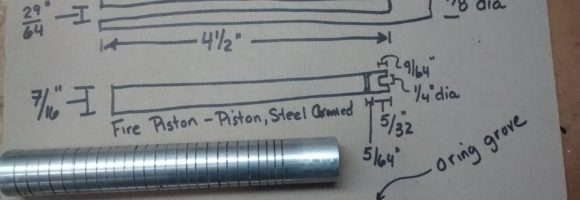 If you’ve got a few tools you can easily make your own setup in a couple of hours. I used an aluminum round for the body and bored it out so that a rod fitted with an O-ring to improve the seal would just fit. The piston has a small cup machined in the end to hold char cloth and that’s it.