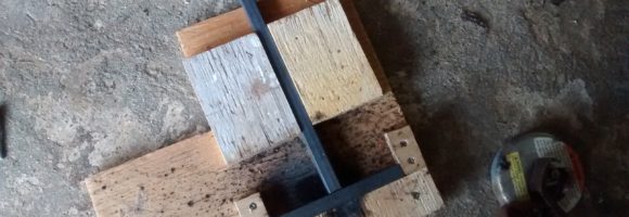 Now one of the key things whenever you are undertaking a project is to assess the tolerances required – I think that’s becoming less of a factor in industry with computer controlled equipment, but if you shop is like mine – pretty manual, then tolerances are a key factor. Keep that in mind when you produce the jigs. In this case I’m welding up parts for an iron and oak shelf for my brother and sister in law. It has to be square but doesn’t need to be super precise – so a quickly put together jig made from scraps of plywood is just the think to make the repeat assemblies quickly and accurately.