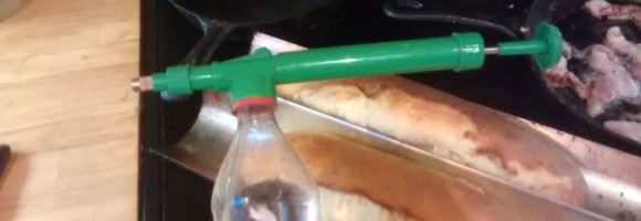 But there is a cheap and easy way to get those chewy crusts at home – air charged plant misters. Unlike the hand pumped sprayers and misters the air charged ones see you pump the air/water bladder with air and then when the trigger is pressed releases a large volume of fine mist. Compared to the hand pumped versions you get more volume and a finer spray.