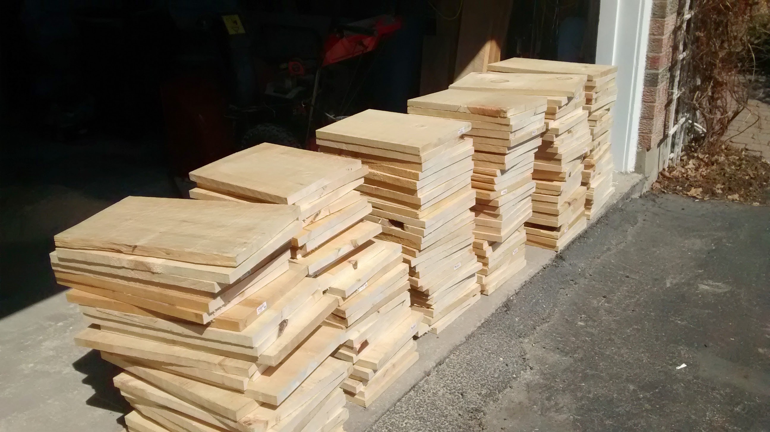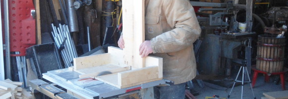 My upper frames are heavier than need be 2×6’s rather than 2×4’s but I had all those on hand, left over from the ramps needed to get my two letter-press printing presses home… but that is a story for another day. Given the heavier materials I added a 2×6 cross piece at the halfway point for rigidity. Four 2″ hinges are positioned a 1′ and 3′ in from each of the ends on one side.